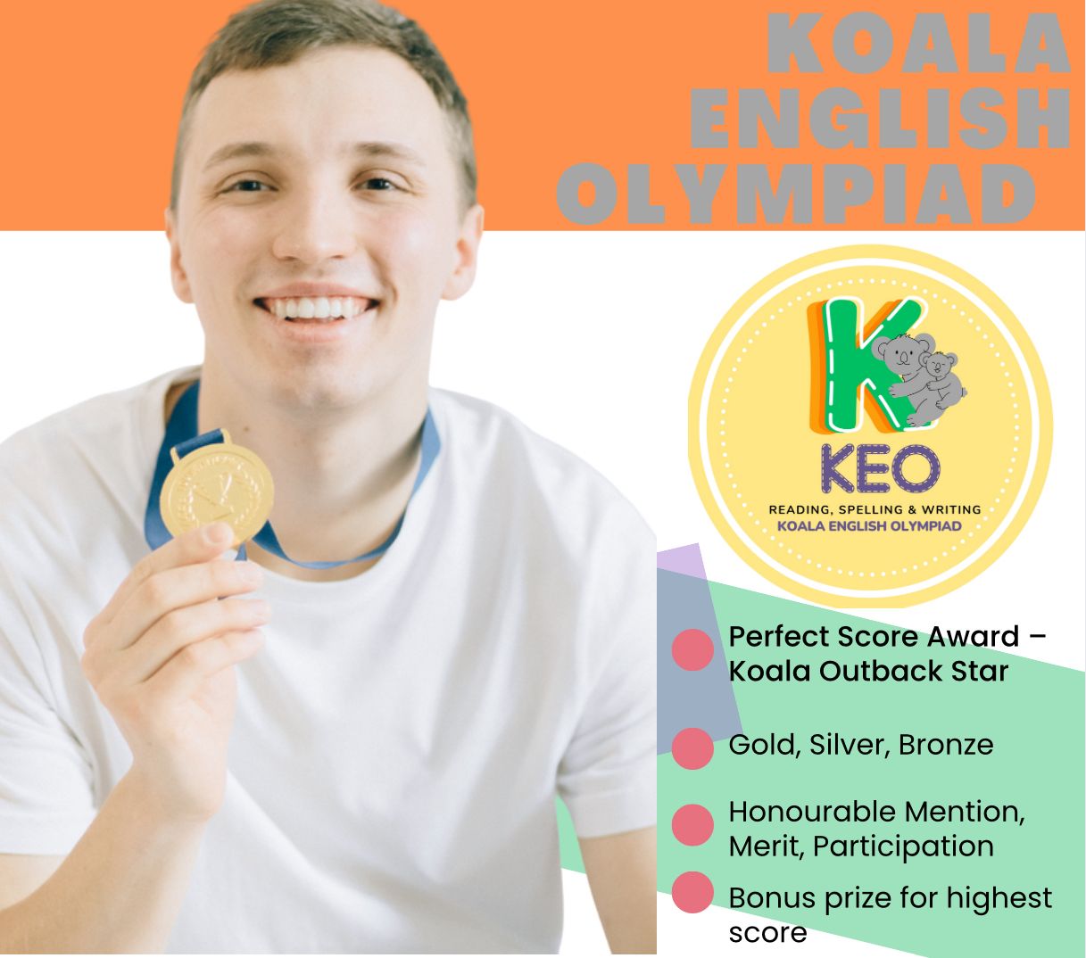 The Koala English Olympiad (KEO) is a premier international competition designed to inspire young learners from Kindergarten to Grade 12 to master English language skills. Rooted in Australia’s rich educational tradition, this Olympiad encourages creativity, critical thinking, and linguistic excellence. The KEO competition assesses the three abilities of reading, spelling, and writing through a comprehensive platform that not only combines simple knowledge tests but also encourages students to move from basics to higher-level, more creative, and structured English writing and application. Through engaging and challenging rounds, students develop their linguistic abilities while celebrating the joy of language. Open to students worldwide, the Olympiad can be participated in either online or on paper, as arranged by participating schools or organizing bodies.
